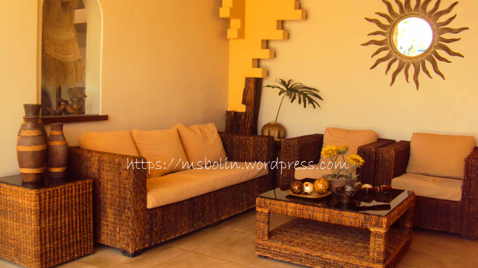 Finding our way to our room, we passed by a narrowΒ hallway. Β Narrow hallways can be dull, but with decors hanging on itsΒ walls and theΒ brightness of direct sunlight passing through the other side, IΒ have a ratherΒ reassuring walk toward our temporary abode.