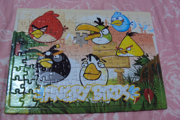 We again bought a new Angry birds puzzle board. This time, the puzzle does not have a board where the pieces could fit in. No cheating for this one, I told myself.