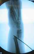 An X-ray of what happened to Second son’s forearm and how his surgeon proposed to insert the metal pin. His first surgery was scheduled November 3 or 5.